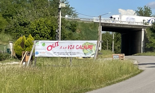 Cette année ce sont 30 banderoles « Oui à la Via Galaure » qui sont disposées tout au long de l’itinéraire, entre Saint Vallier et Roybon. Elles seront là jusqu’aux prochaines élections municipales afin de rappeler à tous l’intérêt de cet itinéraire. Merci Jean-Guy pour ton engagement au service de ce projet au sein de l’AF3V.