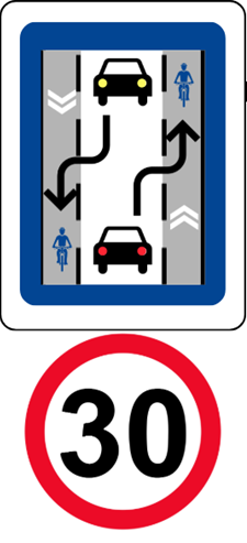 - Limitation de vitesse dans les CVCB (de 30km/h à 50km/h, exceptionnellement 70km/h) en fonction du profil de la route, du trafic et de la qualité de l’aménagement.