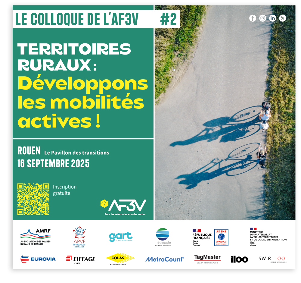 L’AF3V organise le mardi 16 septembre 2025 au Pavillon des Transitions à Rouen un colloque sur le développement des mobilités actives en territoire rural.