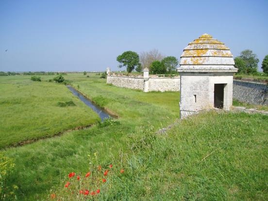 Depuis la fin de la Voie Verte à Bellevue il est possible de rejoindre Brouage, petite cité fortifiée au 17ème siècle, dont les remparts dominent les marais. Pour cela traversez le canal de la Seudre, allez à l’Auberge des 3B, et prenez le chemin qui longe le canal de Broue et qui commence à droite de l’auberge (panneau impasse).