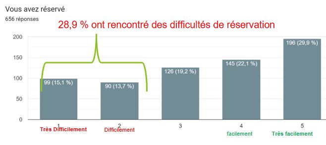 53% ont pris un train avec une réservation vélo et 80% d’entre eux ont disposé de l’information en amont. En revanche 30% ont eu des difficultés de réservation.