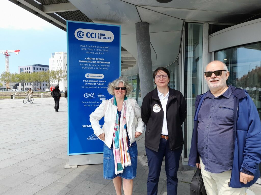 Le 2 mai 2023, nous nous sommes rendus à l’invitation de la CCI Seine Estuaire pour une réunion de travail à laquelle étaient conviées les associations. L’AF3V était représentée par Christelle Cubaud (déléguée de l’itinéraire La Seine à Vélo et vice-présidente) et André-Pierre Hodierne (délégué du Calvados pour les Dérailleurs 14). La Roue Libre du Havre était bien évidemment présente à nos côtés.