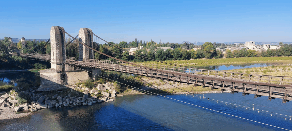 Cette Fête des Voies Vertes sera aussi pour nous l’occasion de nous regrouper devant le vieux pont suspendu de Mallemort dont le projet de réhabilitation a été – malheureusement ! – suspendu (c’est le cas de le dire !) pour des raisons financières.