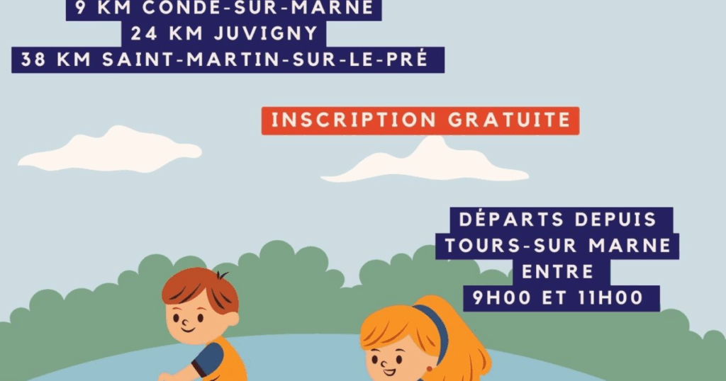 Le comité des fêtes et l’association Tours d’Ecoles ainsi que la mairie de Tours-sur-Marne proposent une randonnée à vélo ou à roller avec plusieurs formats de15, 24 et 38 km le long de la voie verte longeant la Marne.