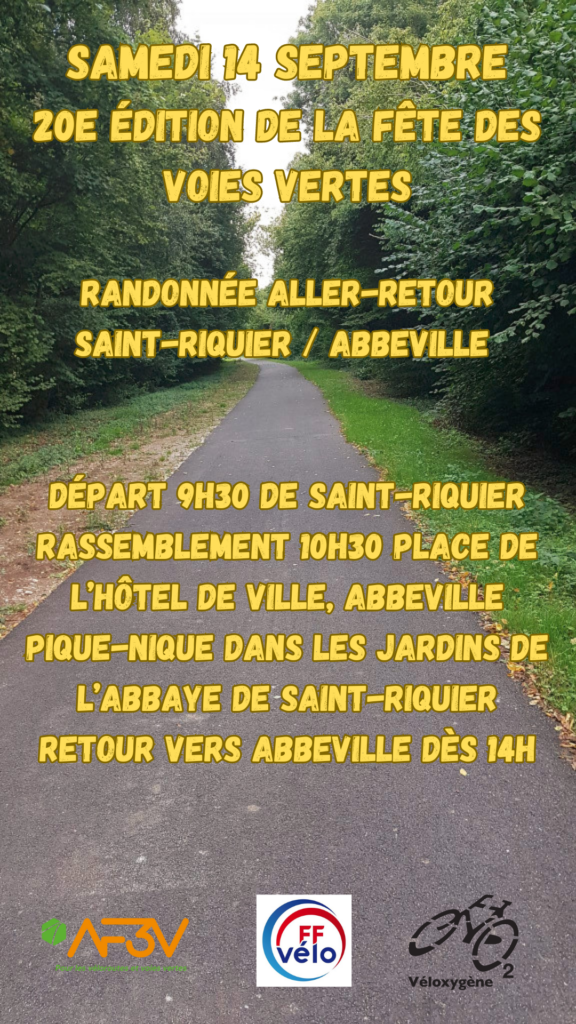 En partenariat avec les associations Véloxygène et la FFvelo et le soutien de deux associations locales, nous prévoyons une balade Saint-Riquier / Abbeville et retour avec pique-nique dans les jardins de l’Abbaye de Saint-Riquier.
