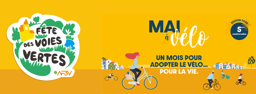 En 2025, la Fête des voies vertes fait ses valises et s’installe en mai ! Traditionnellement organisée en septembre, nous avons pris la décision d’intégrer la Fête des voies vertes dans le cadre de Mai à vélo. Ceci afin d’offrir plus de visibilité aux évènements et pour renforcer la promotion du vélo et des mobilités actives !