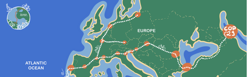 La COP 30 Bike Ride arrive bientôt en France! Inscrivez-vous vite pour participer pour un jour ou plus à ce relais vélo géant de la COP 29 à la COP 30. Leur objectif : promouvoir le vélo comme une solution de décarbonation rapide et efficace. Ils traverseront la France au travers de deux branches qui se rejoindront à Bordeaux ! La branche Sud, qui porte la bannière depuis le lieu de la COP 29, arrivera par l’Italie, et sera à…
