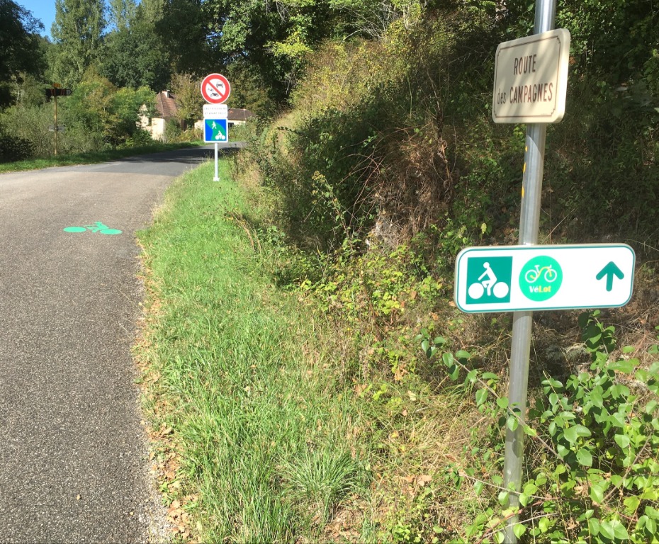 En 2025 la liaison Castelfranc (vallée du Lot)-Pont Carral (jonction avec la Véloroute vallée du Céou en Dordogne) est lancée, et un premier tronçon a été ouvert sur la D660 et la D45 entre les Junies et Cazals, avec marquage au sol de pictogrammes vélos et de chevrons.