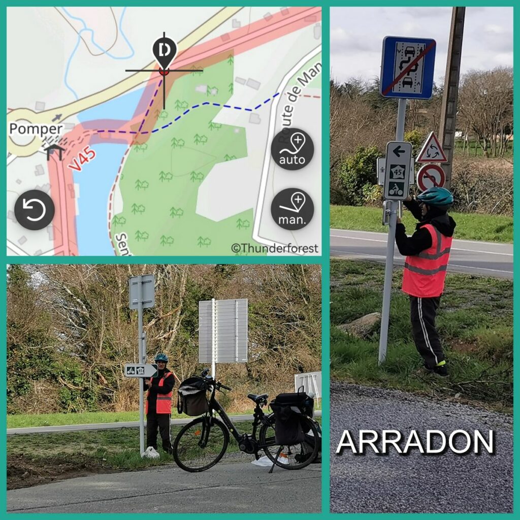 - le suivi de la signalisation de la V45 en reportant leurs interventions effectuées à vélo et en signalant les autres interventions plus importantes (chutes d’arbres, massifs en béton, panneaux avec mention…),