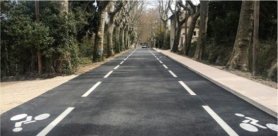 - Utilisation systématique, pour les bandes de rives, d’un revêtement distinct de celui de la voie centrale afin de bien différencier les espaces de circulation.