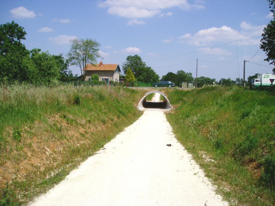 En continuant sur la voie, vous passez sur le petit canal de Pont-l’Abbé (très jolie vue), puis à Montierneuf (ancienne abbaye à 200m du chemin). Après 10,8km, vous arrivez à Saint-Agnant, à l’ancienne gare (accès au village à cet endroit, tous commerces), et passez sous la voie rapide D733.