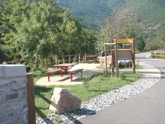 Des bancs sont posés tous les 500m, et il existe trois aires d'arrêt avec tables, bancs, et ombre : à l'entrée à Arre juste avant la passerelle, après le deuxième tunnel, et à la fin de la Voie Verte à Molières-Cavaillac.