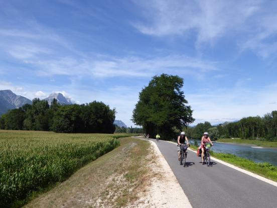 ×Cette véloroute emprunte la rive droite de l’Isère, au pied de la Chartreuse, avec un très beau panorama sur le Belledonne, la Chartreuse et le Vercors.