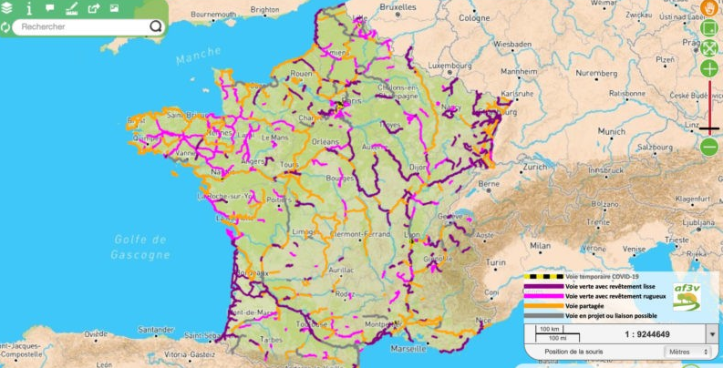 Souvent connue pour sa carte interactive, l’AF3V a été une des premières structures à proposer une carte recensant le réseau de véloroutes et de voies vertes du territoire français métropolitain.