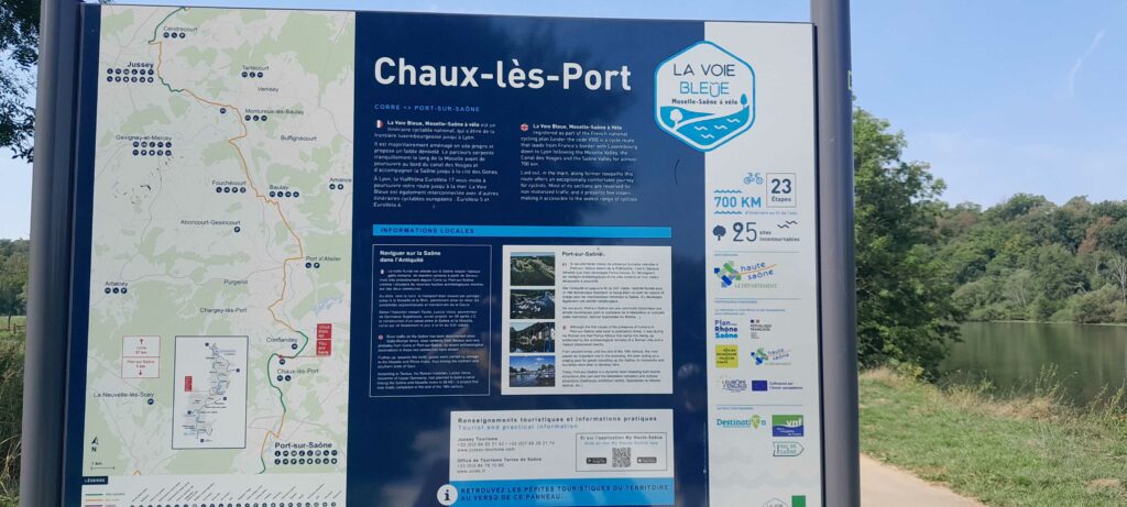 La Voie Bleue – V50 est un itinéraire cyclable de 709 km reliant Apach (frontière luxembourgeoise) àLyon, en suivant la Moselle, le Canal des Vosges et la Saône, avec 99% du parcours aménagé.En Haute-Saône, l’itinéraire représente environ 140 kilomètres. Sur l’ensemble de l’itinéraire haut-saônois, la section entre Corre et Port-sur-Saône, en empruntant beaucoup de routes…